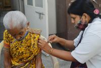 Health workers administering the COVID-19 vaccine to people at a hospital during the Vaccination Drive, in Bengaluru on Monday 5th April 2021
