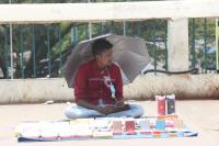 A salesman selling mobile covers at Majestic bus stand in this scorching heat, in Bengaluru on Saturday 10th April 2021