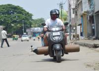 People carrying medical oxygen cylinder for refilling during the state-wide weekend lockdown in the wake of the 2nd wave of COVID-19 pandemic, in Bengaluru on Saturday 24th April 2021