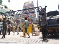 Preparations for Bengaluru Karaga underway with strict covid-19 precautions at Dharmaraya Temple, in Bengaluru on Tuesday 27th April 2021