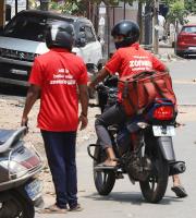 Food delivery boys at Ullal road, amid coronavirus pandemic, in Bengaluru on Wednesday 28th April 2021