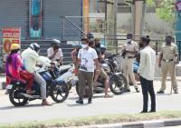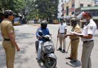 Police Check post during Coronavirus lockdown in the wake of the 2nd wave of COVID-19, in Bengaluru on Thursday 29th April 2021