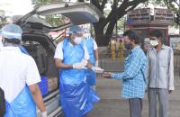 Volunteers distributed free food for poor people at KR Market during the Coronavirus lockdown, in Bengaluru on Saturday 1st May 2021
