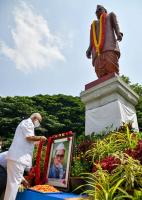 CM BS Yediyurappa paid floral tribute to the Former CM KC Reddy portrait on the occasion of his birth anniversary at Vidhana Soudha, in Bengaluru on Wednesday 5th May 2021