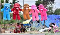 No business for roadside vendors of stuffed toys on Mysuru Road Highway during the Coronavirus Lockdown, in Bengaluru on Thursday 27th May 2021