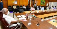 CM BS Yediyurappa and BWSSB officials at BWSSB review meeting at CM home office Krishna, in Bengaluru on Tuesday 1st June 2021