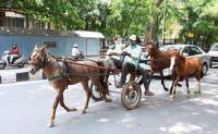 Horse cart on the move with 2 other horses on Nrupatunga Road during lockdown in the wake of the 2nd wave of COVID-19, in Bengaluru on Thursday 3rd June 2021