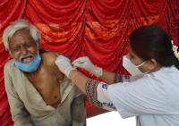 A health worker administrates a dose of the COVID-19 vaccine to a homeless and needy person at KR Market during COVID-19 vaccination drive, in Bengaluru on Thursday 3rd June 2021