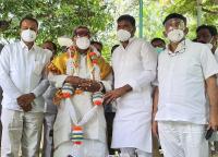 Newly elected Congress MLA Basanagouda Turvihal from Maski assembly constituency met CLP Leader Siddarmaiah and KPCC President DK Shivakumar at Siddaramaiah residence, in Bengaluru on Tuesday 8th June 2021
