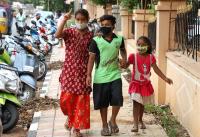 Children moving with face mask at Jnana Bharathi during Coronavirus pandemic, in Bengaluru on Sunday 20th June 2021