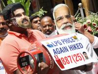 Members of Bengaluru City Youth Congress protesting against BJP Central government for hike in LPG cylinder, in Bengaluru on Friday 2nd July 2021