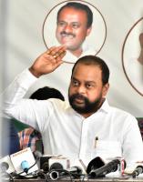 JDS leader T A Saravana addressing a press conference at JDS Office, in Bengaluru on Saturday 10th July 2021