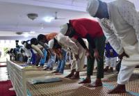 Muslims praying at Quba Mosque, Kalasipalyam, on the occasion of Bakrid Festival, in Bengaluru on Wednesday 21st July 2021