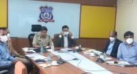 Police Commissioner Kamal Pant with BBMP Commissioner Gaurav Gupta and other officials during video conference with Bengaluru divisional DCPs regarding COVID-19 status, in Bengaluru on Monday 2nd August 2021