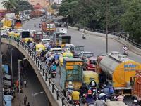Traffic jam due to Good Shed Road being closed for White Topping of the road by BBMP, in Bengaluru on Thursday 5th August 2021