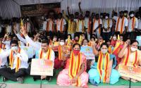 Members of Karunada Vijayasene staged a protest for Mekedatu Project issue, in Bengaluru on Thursday 5th August 2021