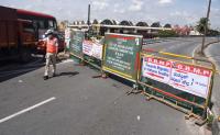 A part of Mysore Road flyover has been closed for traffic movement due to road work under progress, in Bengaluru on Saturday 7th August 2021