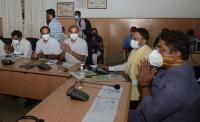 Minister R Ashok with Gaurav Guptha, BBMP Commissioner and others seen at a meeting at BBMP Office, in Bengaluru on Monday 9th August 2021