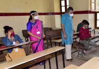 Minister BC Nagesh visited ongoing 2nd PUC Exam centre at Vani Vilas Girls Degree College, in Bengaluru on Thursday 19th August 2021