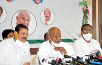 Former PM and JDS Supremo HD Devegowda addressing a press conference with JDS leaders at JDS office, in Bengaluru on Sunday 22nd August 2021