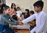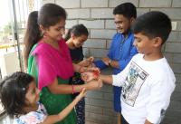 Sisters tying Rakhi to their brothers on the occasion of Raksha Bandhan, in Bengaluru on Sunday 22nd August 2021