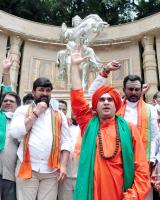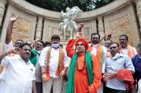 Sri Basava Jayamritunjaya Swamiji with Former Minister Vinay Kulkarni and Panchamashali community people during their demanding for 2A reservation for Panchamasali community, in Bengaluru on Wednesday 25th August 2021