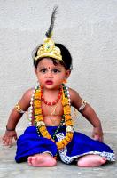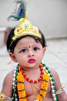 A kid dressed as Sri Krishna on the occasion of Sri Krishna Janmashtami, in Bengaluru on Sunday 29th August 2021