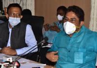 Minister R Ashok with Gaurav Gupta, BBMP Commissioner addressing a press conference at BBMP Head office, in Bengaluru on Monday 6th September 2021