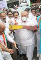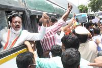 KPCC Working President and MLA Ramalinga Reddy and Congress leaders detained by police during their protest against Central government for LPG cylinder price hike, in Bengaluru on Wednesday 8th September 2021