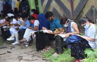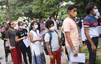 Students last minute preparation before going to exam centre for appearing in National Eligibility cum Entrance Test (NEET UG 2021) at Army Public School, in Bengaluru on Sunday 12th September 2021