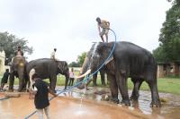 Mahouts seen bathing the Dasara Elephants for the upcoming Dasara 2021 Festival in Mysuru on Thursday 16th September 2021