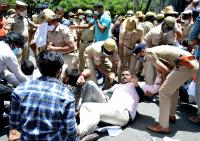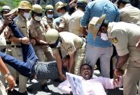 Members of NSUI being detained by police during their protest against the National Education Policy (NEP) at Kumar Krupa Guest House, in Bengaluru on Friday 17th September 2021