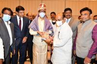 Chief Justice of India NV Ramana being felicitated by Chief Minister of Karnataka Basavaraj Bommai during meet, in Bengaluru on Saturday 18th September 2021