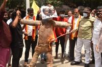 Kannada Activists led by Vattal Nagaraj protesting against Hindi Diwas at SBM circle, in Mysuru on Sunday 19th September 2021