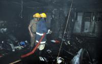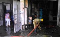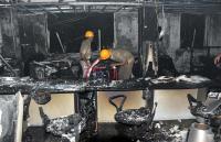 Firemen trying to dose off the fire at Eesanje Newspaper office at Dr Rajkumar Road, in Bengaluru on Sunday 19th September 2021