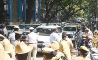 Traffic Jam at Queens Road during Congress Leaders protest against hike in fuel rate, in Bengaluru on Monday 20th September 2021