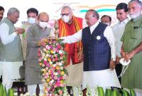 CM Basavaraj Bommai with Union Minister Giriraj Singh and others other Karnataka leaders inaugurated the Amrutha Gram Panchayat Scheme, in Bengaluru on Thursday 23rd September 2021