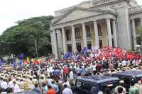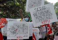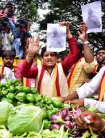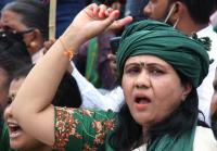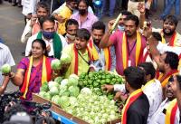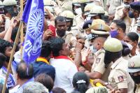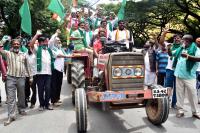 Farmers and activists in support of the protesting farmers stage a protest during Nationwide strike called by farmers against central governments agriculture reforms, in Bengaluru on Monday 27th September 2021