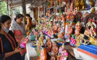 Visitors seen admiring the Dasara Dolls on display at Malleshwaram, for the upcoming Dasara Festival, in Bengaluru on Tuesday 5th October 2021