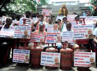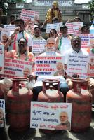 Karnataka Congress members and workers staged a protest against the Central government for Hike in Petrol and LPG prices and the Uttar Pradesh Lakhimpur Kheri violence, in Bengaluru on Thursday 7th October 2021