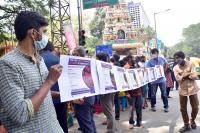 Members of Stop Communal Goondagiri protesting against communal violence in Karnataka, in Bengaluru on Thursday 21st October 2021