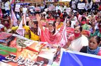 Members of Slum Janandolana Karnataka protesting against CM Basavaraj Bommai and attack on dalits , in Bengaluru on Thursday 21st October 2021