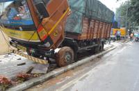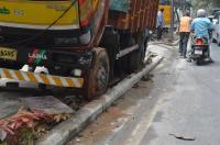 A truck seen parked illegally on the newly laid footpath and destroyed the plants near Palace road, Bengaluru on Friday 29th October 2021
