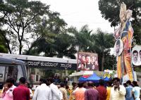 Fans of Actor Puneeth Rajkumar waiting outside Kanteerava Studio to visit Puneeth Rajkumar samadi, in Bengaluru on Monday 1st November 2021
