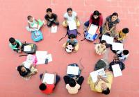 Children are immersed in reading at a tuition class on the occasion of Children Day, in Bengaluru on Sunday 14th November 2021