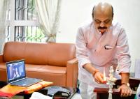 Chief Minister Basavaraja Bommai inaugurated the “Kannada Rajyotsava Sambhrama 2021” event with the lighting of a lamp via virtual program at his residence, in Bengaluru on Saturday 20th November 2021
