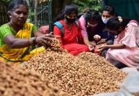 Varieties of Kadlekai (groundnuts) attract the visitors during Kadlekai Parise (Groundnut festival) at Basavanagudi, in Bengaluru on Tuesday 23rd November 2021