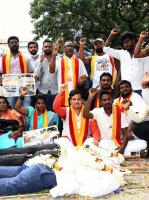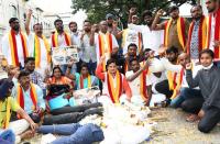 Various organisations participated in a mock funeral at BBMP office demanding to clear pothole roads, in Bengaluru on Monday 29th November 2021