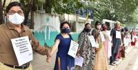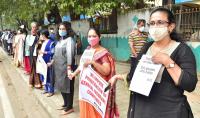 Insurance employees form a Human Chain at Hudson Circle, in protest to fulfill their various demands, in Bengaluru on Wednesday 1st December 2021