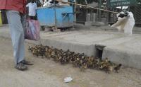 Duck chicks being sold on the busy Coles road, in Bengaluru on Monday 13th December 2021